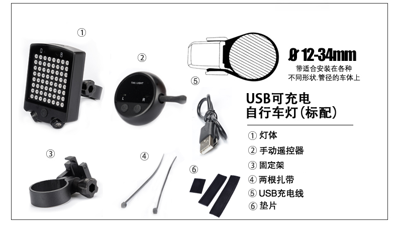 64 Super Bright Electric Bike Parts LED Taillight LD24 Rear Turning Light Images |